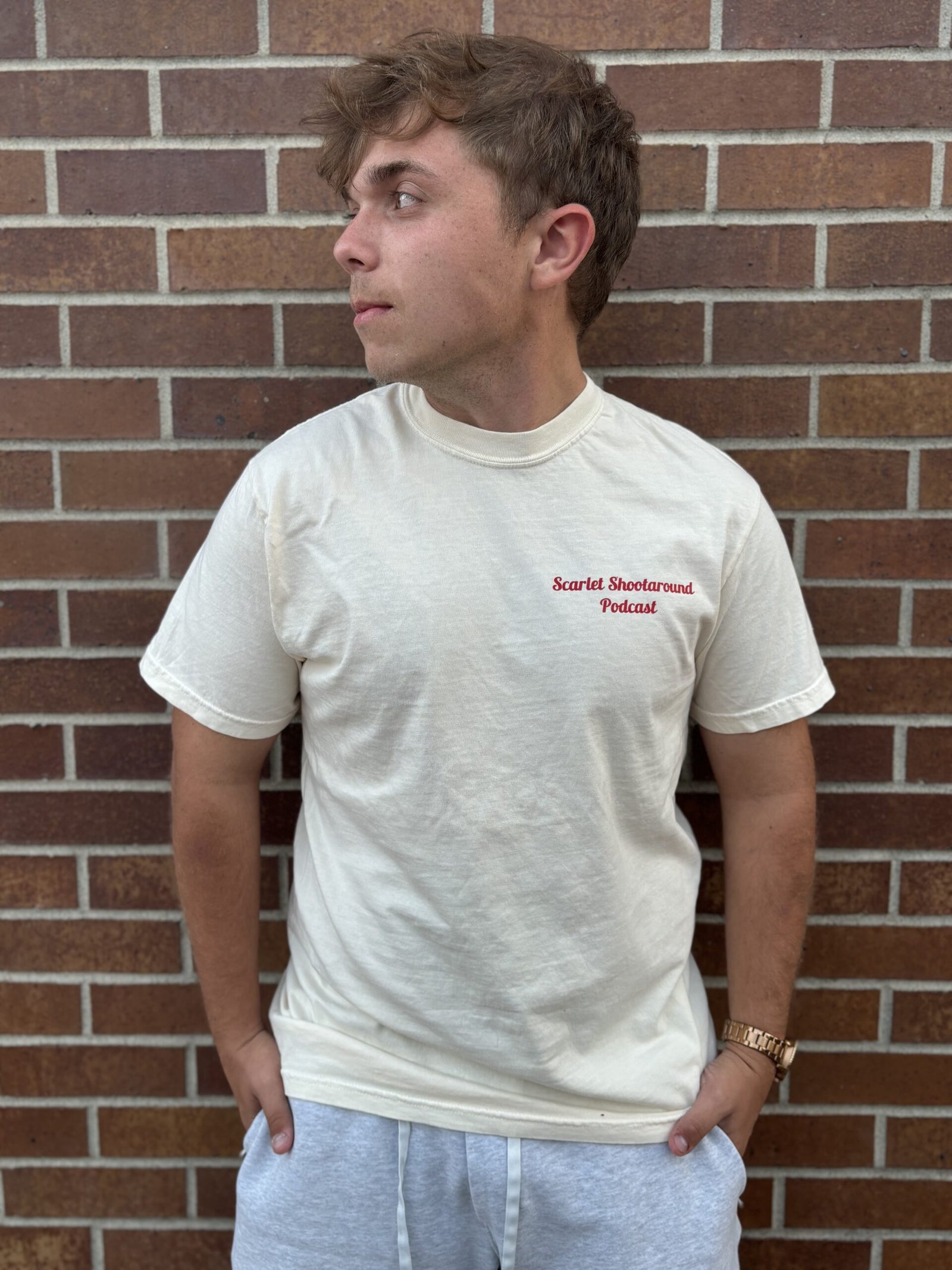 What sets this t-shirt apart is its striking logo design on both the front and back, making it a staple in your wardrobe for every occasion. The classic logo adds a touch of distinction without overwhelming the clean aesthetic. Paired with the timeless color options of bold red or elegant ivory, it suits all tastes and preferences. Add it to your everyday essentials or mix it into a signature outfit that reflects your personality.
